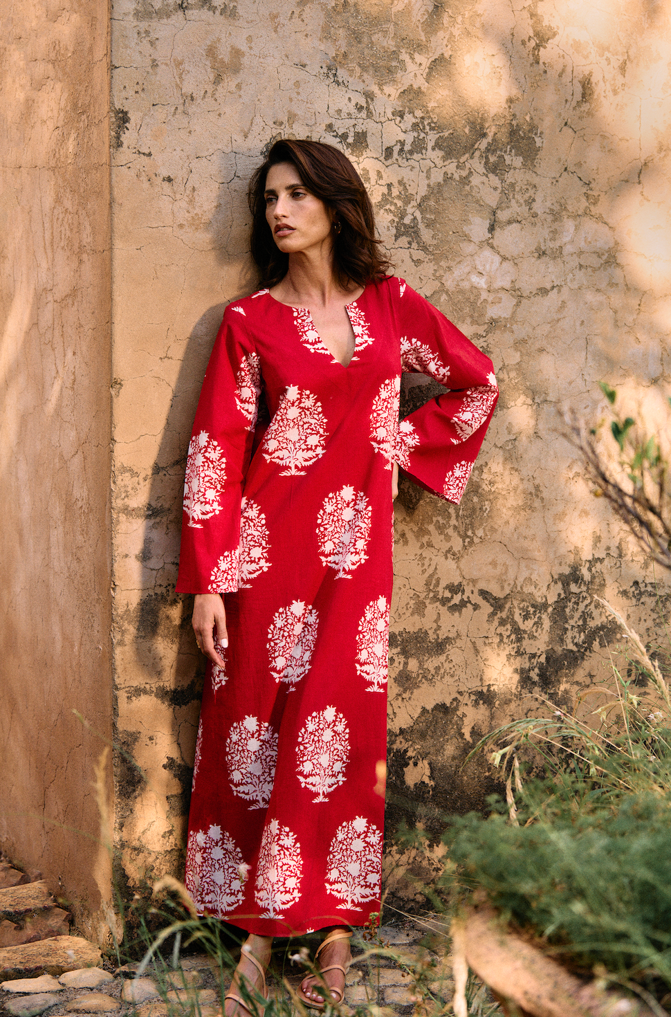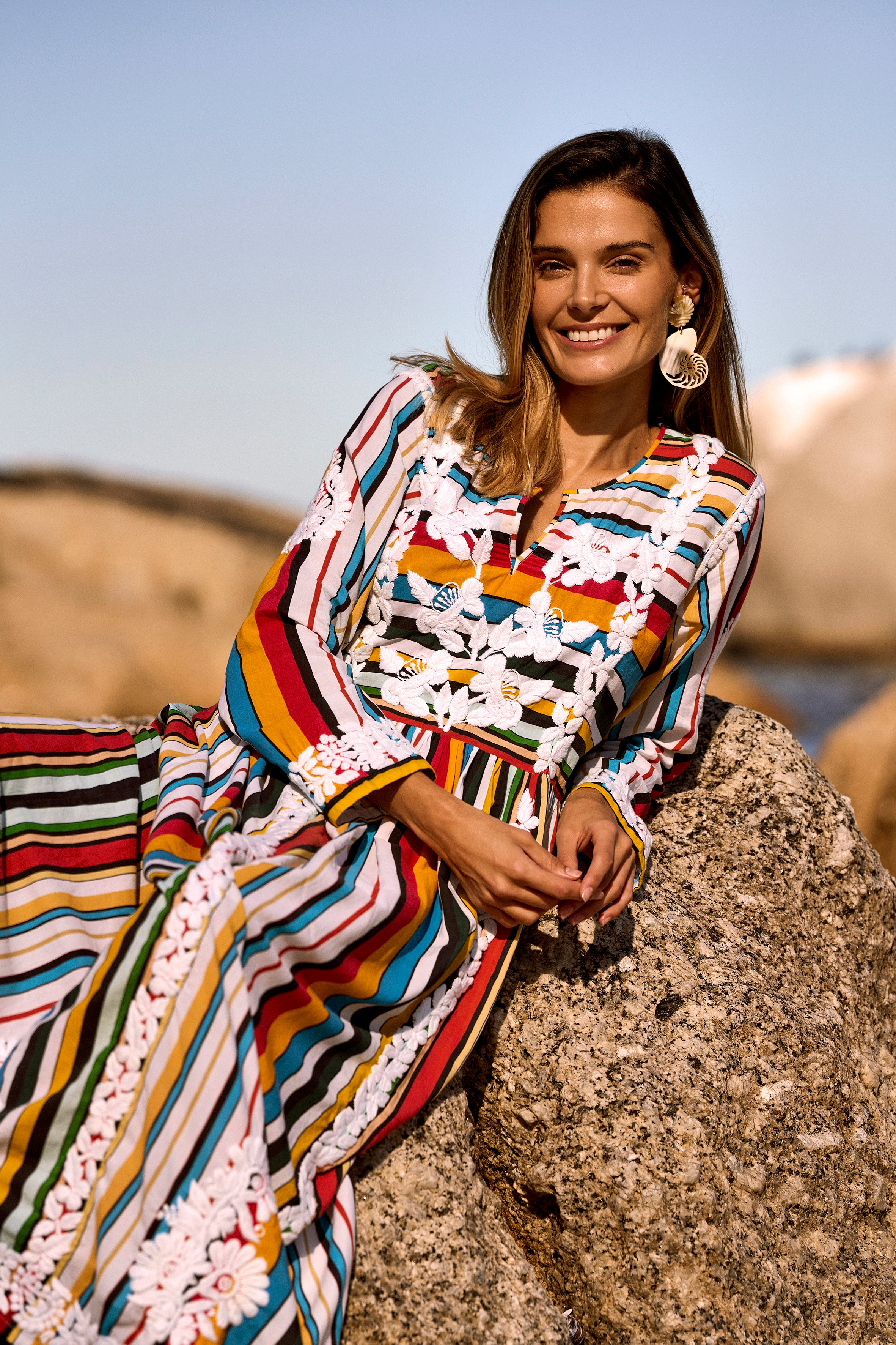 Wear it as a sarong, a dress, or tied over the shoulders—it’s the easiest piece to carry from beach to drinks, with a gentle splash of colour and craft.